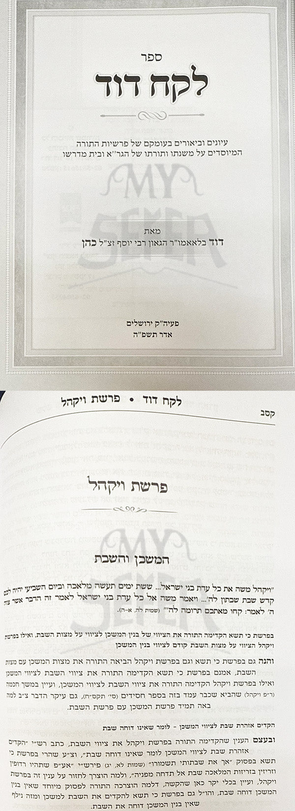Sefel Lekach David / לקח דוד עה"ת ומועדים - ר' דוד כהן