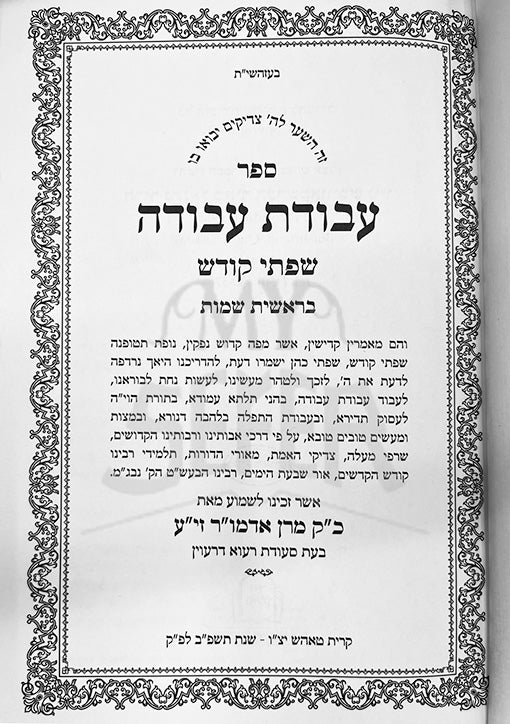 Avodat Avodah : Siftei Kodesh - Bereshit , Shemot ( Tosh Rebbe )