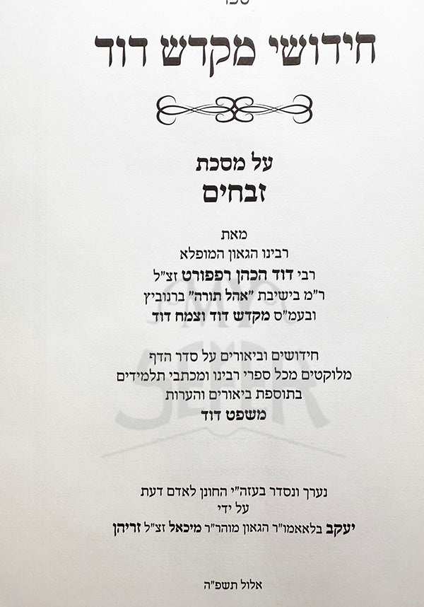 Chidushei Makadosh David-Masechet Zevachim / חידושי מקדש דוד-מסכת זבחים