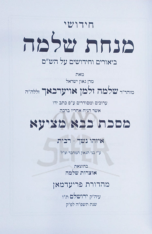 Chidushei Minchat Shlomo Masechet Bava Metzia / חידושי מנחת שלמה בבא מציעא