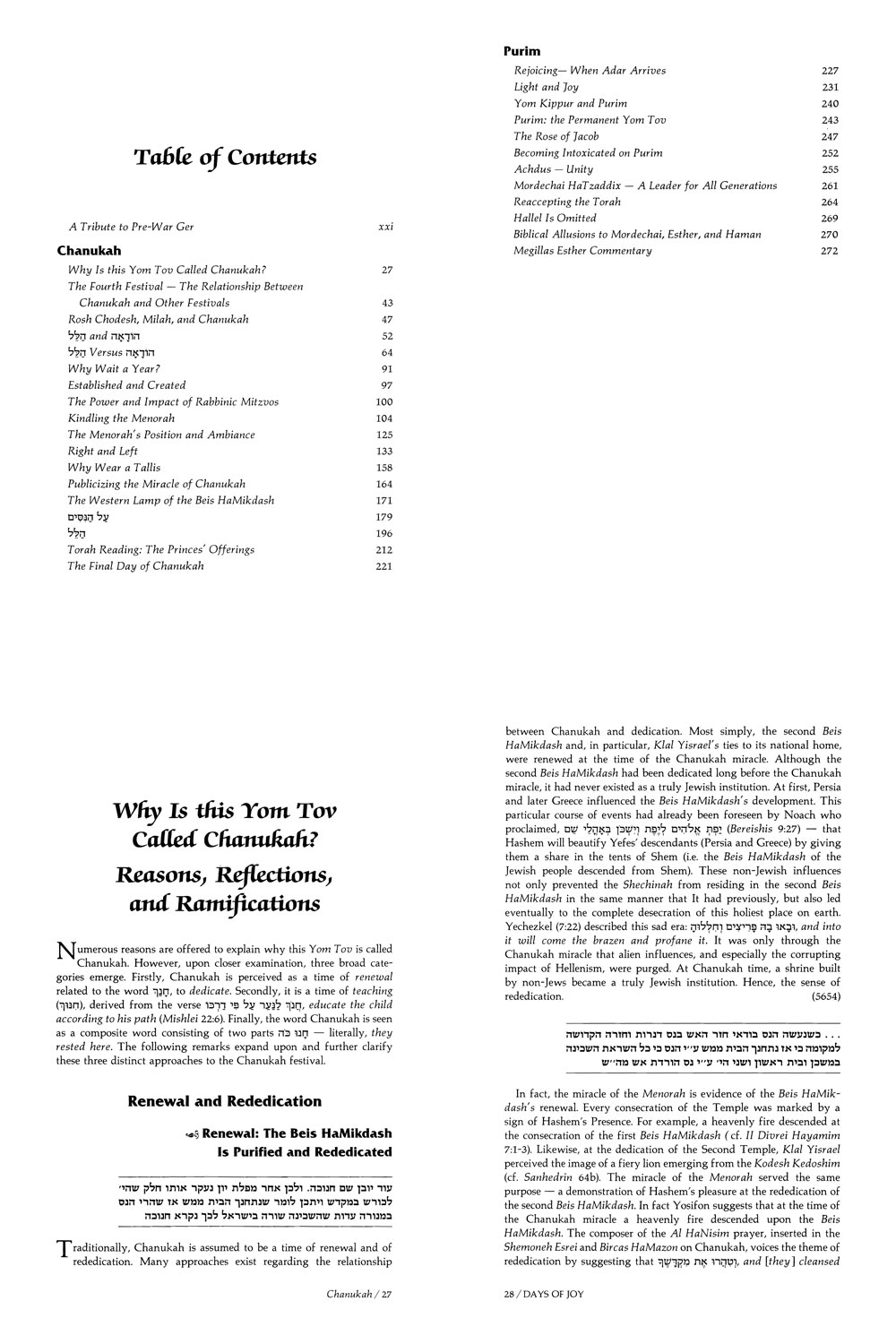 Ideas and insights of the Sfas Emes on Chanukah and Purim.