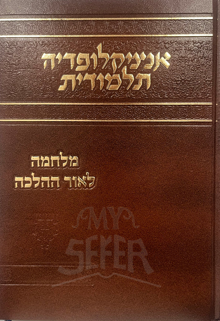 Encyclopedia Talmudis Milchama L'Ohr HaHalacha is a specialized volume within the larger Encyclopedia Talmudis series, focusing on the topic of war from a Halachic perspective. This work delves into the various laws and ethical considerations related to war as discussed in the Talmud and other Jewish legal texts. It provides a thorough analysis of the conditions under which war is permissible, the conduct of soldiers, and the treatment of captives, among other topics. The encyclopedia aims to offer a comprehensive understanding of how Jewish law views and regulates the complexities of warfare.