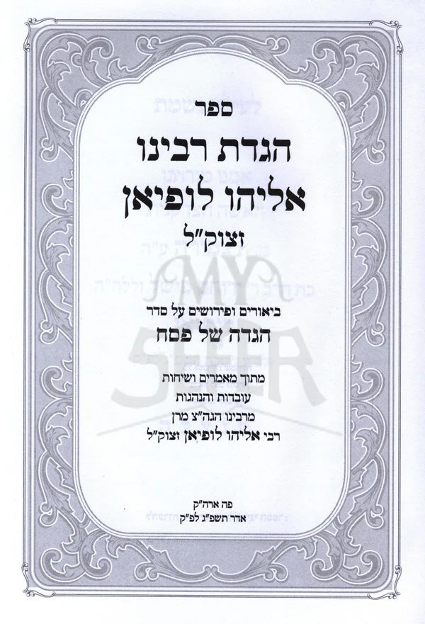 Haggadah Shel Pesach Rav Eliyahu Lopian / הגדת רבינו אליהו לופיאן זצוק"ל