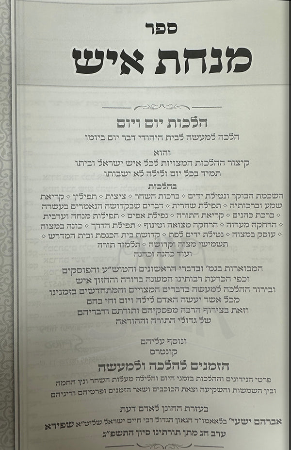 Minchat Ish Hilchot Yom VeYom / מנחת איש הלכות יום ויום