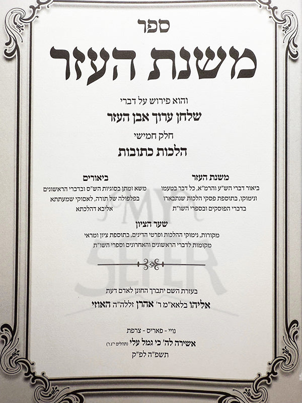Mishnas Ha'ezer - Even Haezer Volume 5 / משנת העזר אבן העזר חלק ה - סו -פה