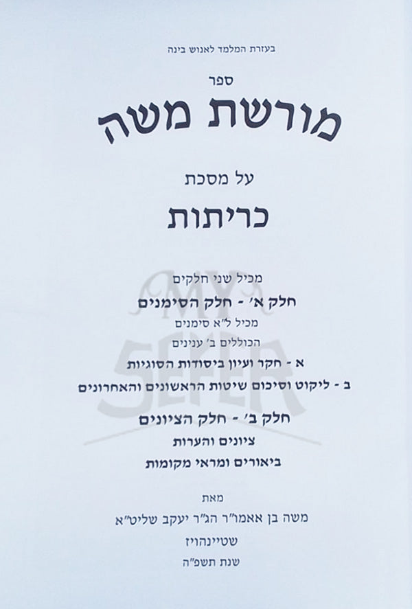 Moreshes Moshe Kriyatot / ספר מורשת משה על מסכת כריתות