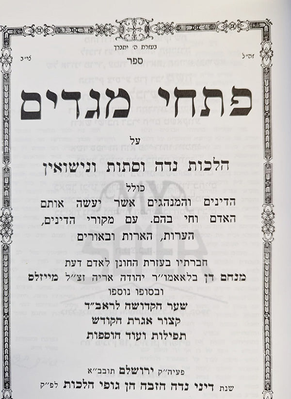 Pitchei Megadim - Hilchot Niddah / פתח מגדים
