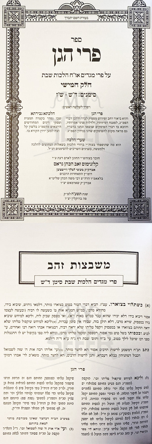 Pri HaGan - P'ri Megadim Hilchot Shabbat 5 Volume Set/ פרי הגן הלכות שבת