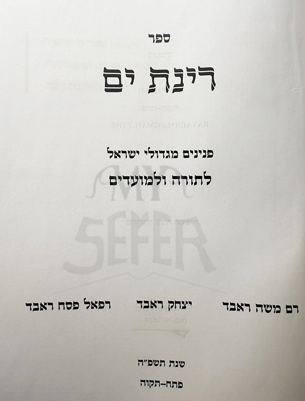 Rinas Yam / רינת ים - פנינים מגדולי ישראל על התורה ועל המועדים