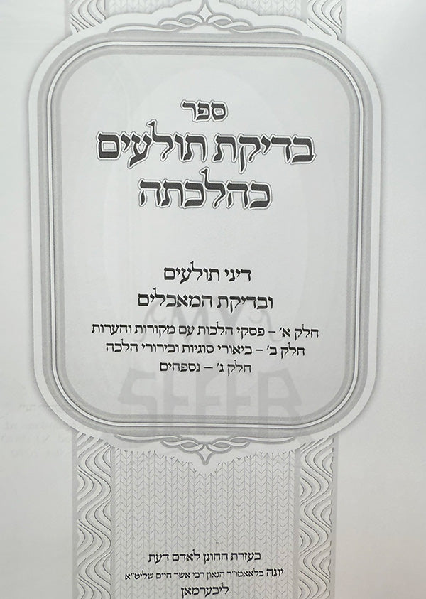Sefer Bedikas Tolaim K'Halacha / ספר בדיקת תולעים כהלכתה