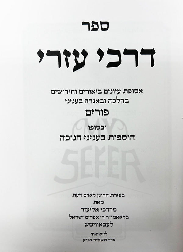 Sefer Darchei Ezri - Purim / ספר דרכי עזרי-פורים