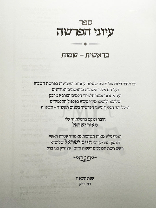Sefer Iyyunei Parshah / עיוני הפרשה בראשית שמות