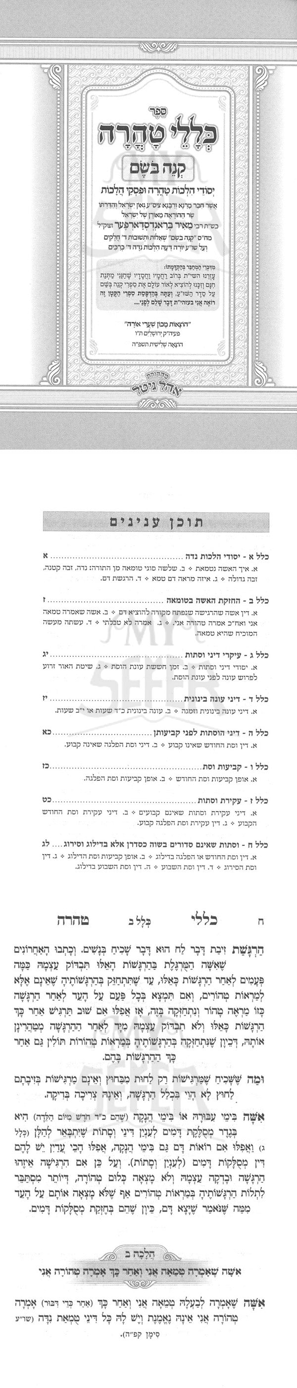Sefer Klalei Taharah / ספר כללי טהרה