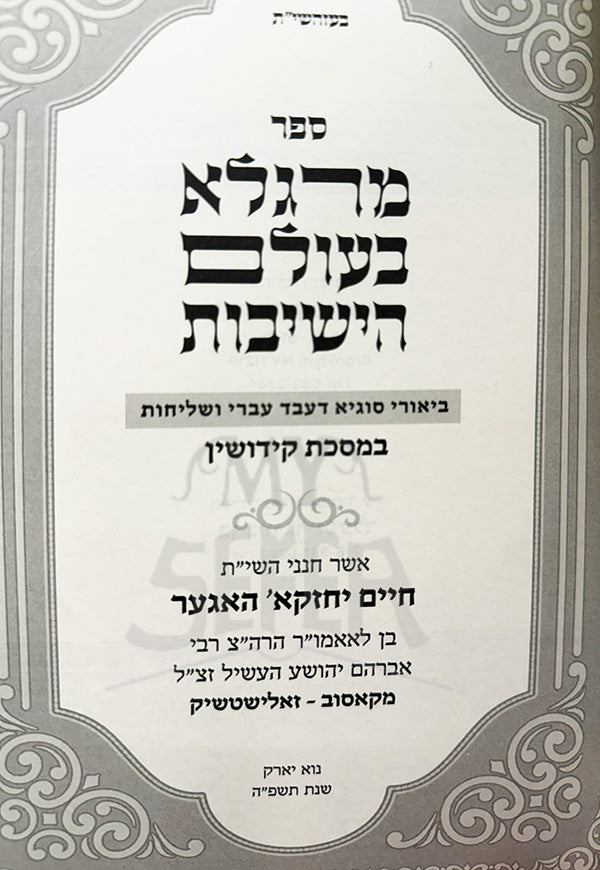 Sefer Margelot Baolam HaYeshivot / ספר מרגלא בעולם הישיבות