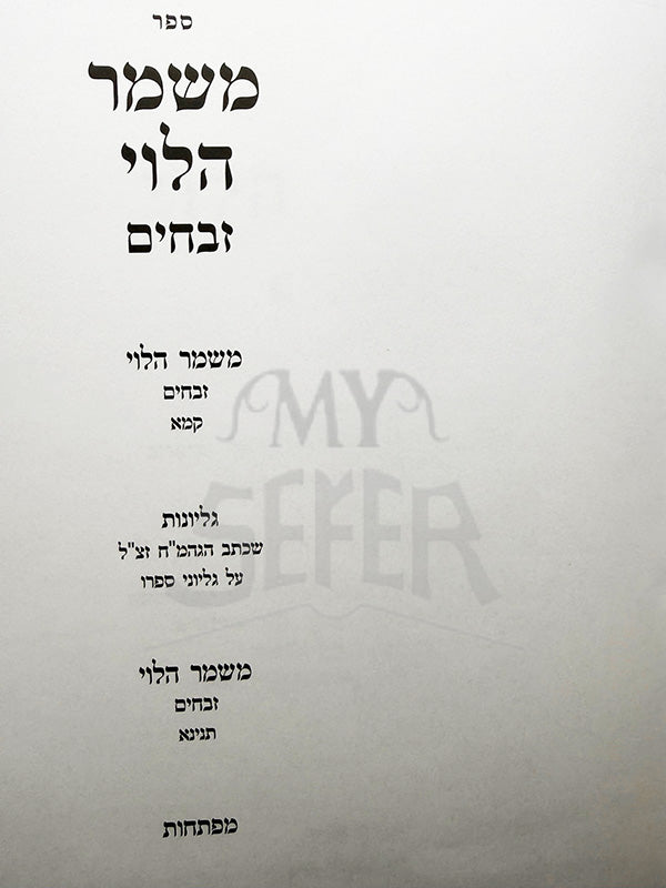 Sefer Mishmar HaLevi Masechet Zevachim / משמר הלוי זבחים