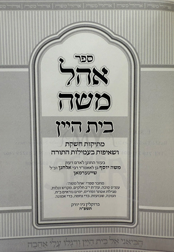Sefer Ohel Moshe Beis HaYayin / ספר אהל משה בית היין