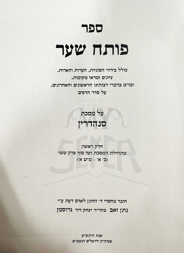 Sefer Poseach Shaar Al Maseches Sanhedrin Vol.2 / פותח שער סנהדרין