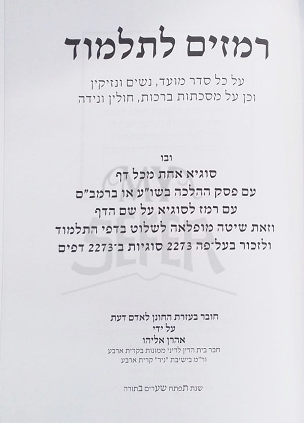 Sefer Remazim LeTalmud/ ספר רמזים לתלמוד
