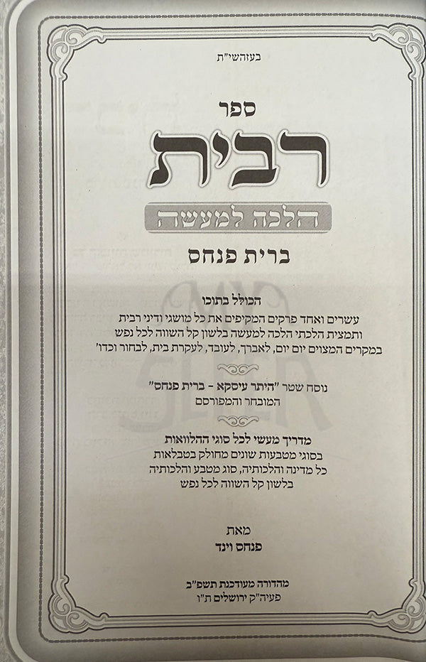 Sefer Ribit - Halachah LeMaaseh - Brit Pinchas / ספר רבית-הלכה למעשה
