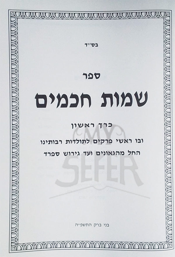 Sefer Sheimos Chachamim Al HaAcharonim / ספר שמות חכמים על האחרונים