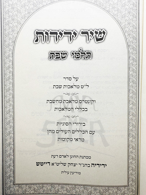 Sefer Shirei Yedidos Talmei Shabbos Al 39 Melachos Shabbos / שיר ידידות תלמי שבת על סדר ל"ט מלאכות שבת