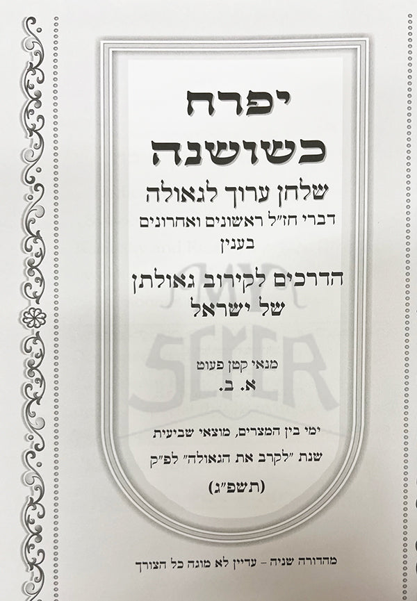 Sefer Yifrach K'Shoshanah / ספר יפרח כשושנה