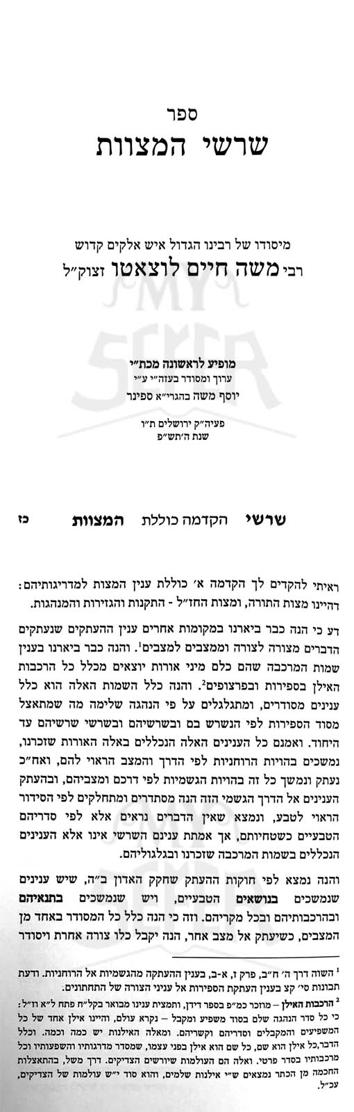 Sharashei HaMitzvot - Rabbi Moshe Chaim Lutzato
