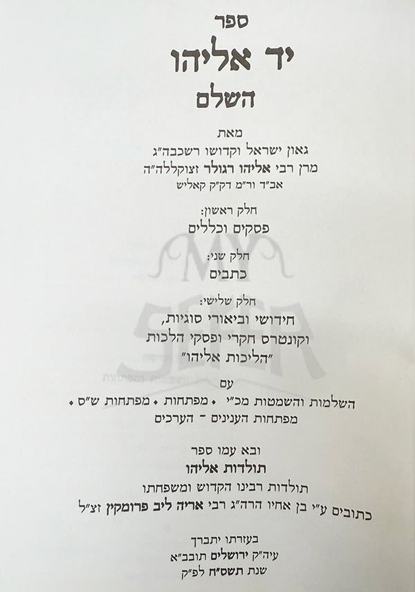 Sheelot VeTeshuvot Yad Eliyahu / שאלות ותשובות יד אליחו