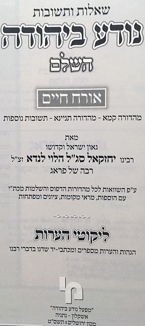 By: Rabbi Yechezkel Landau | Publisher: Machon Yerushalayim / Machon Noda B'Yehuda | Language: Hebrew | Volumes: 5 | Binding: Hard | Size: 10 X 7 inch. |