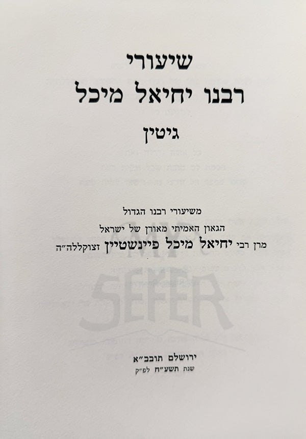 Shiurei Rabbeinu Yechiel Michel Yoma - Gittin / שיעורי רבנו יחיאל מיכל יומא