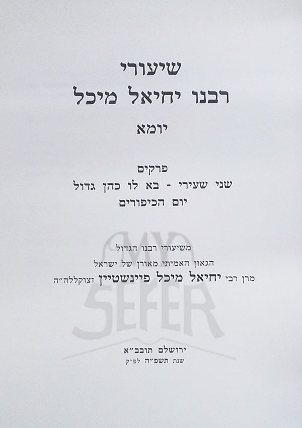 Shiurei Rabbeinu Yechiel Michel Yoma - Yevamot / שיעורי רבנו יחיאל מיכל יומא