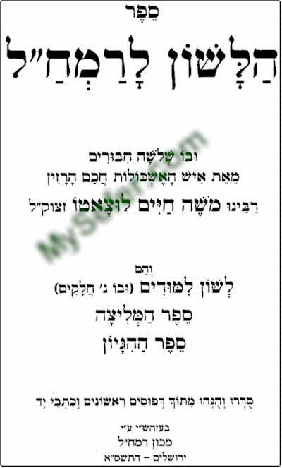 By: Rabbi Moshe Chaim Luttzatto (Ramchal) | Publisher: Machon HaRamchal | Language: Hebrew | Volumes: 1 | Pages: 450 | Binding: Hard |only 1 left!!