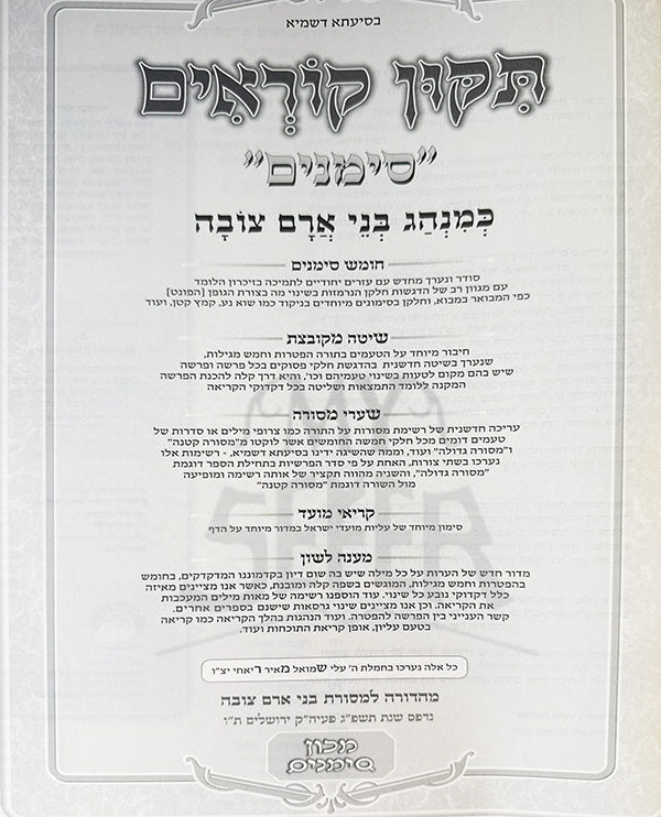 Tikun Korim Simanim / תיקון קוראים סימנים