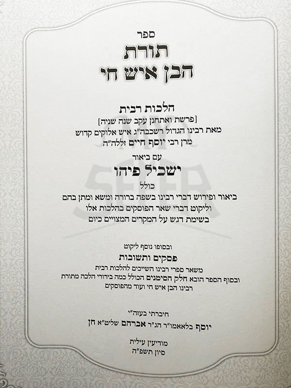 Torat HaVen Eish / תורת הבן איש חי ריבית
