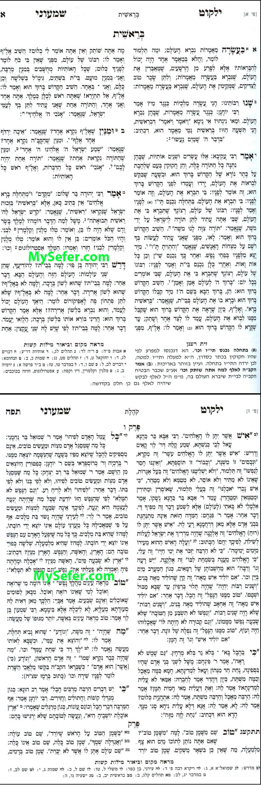 Also known as Yalkut, one of the most popular early Midrashic collections on the Bible, compiled by Rabbi Shimon Ashkenazi HaDarshan of Frankfurt (circa 1260). Many Midrashim are known only because they are cited in this work.