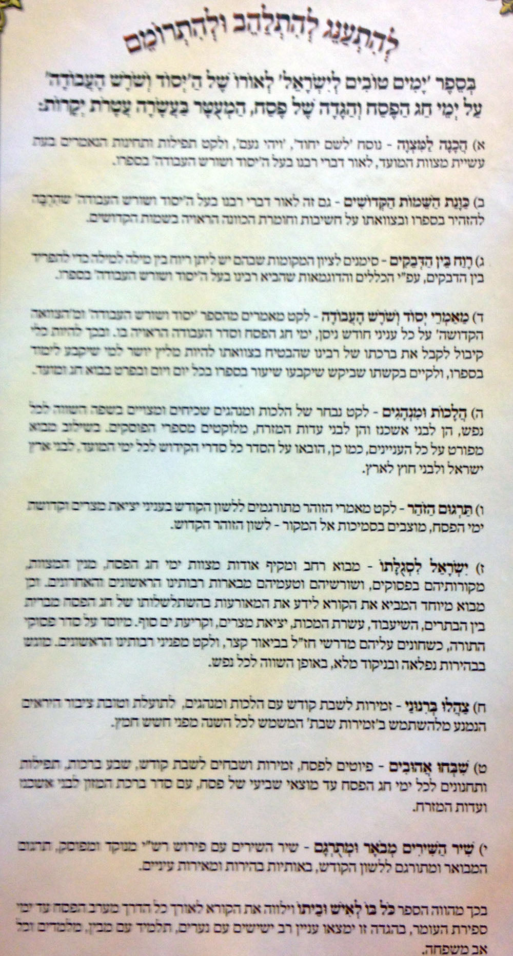 Yamim Tovim L'Yisrael - Yesod ve'Shoresh HaAvodah : PESACH